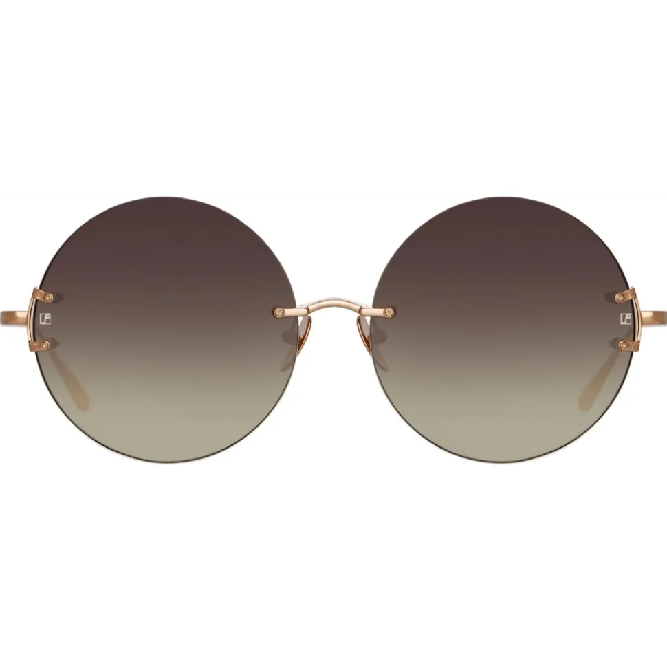 The Lotus round sunglasses encapsulate a signature LINDA FARROW style. The glossy edged frameless mocha gradient lenses are paintstakingly polished for a luxurious shine.