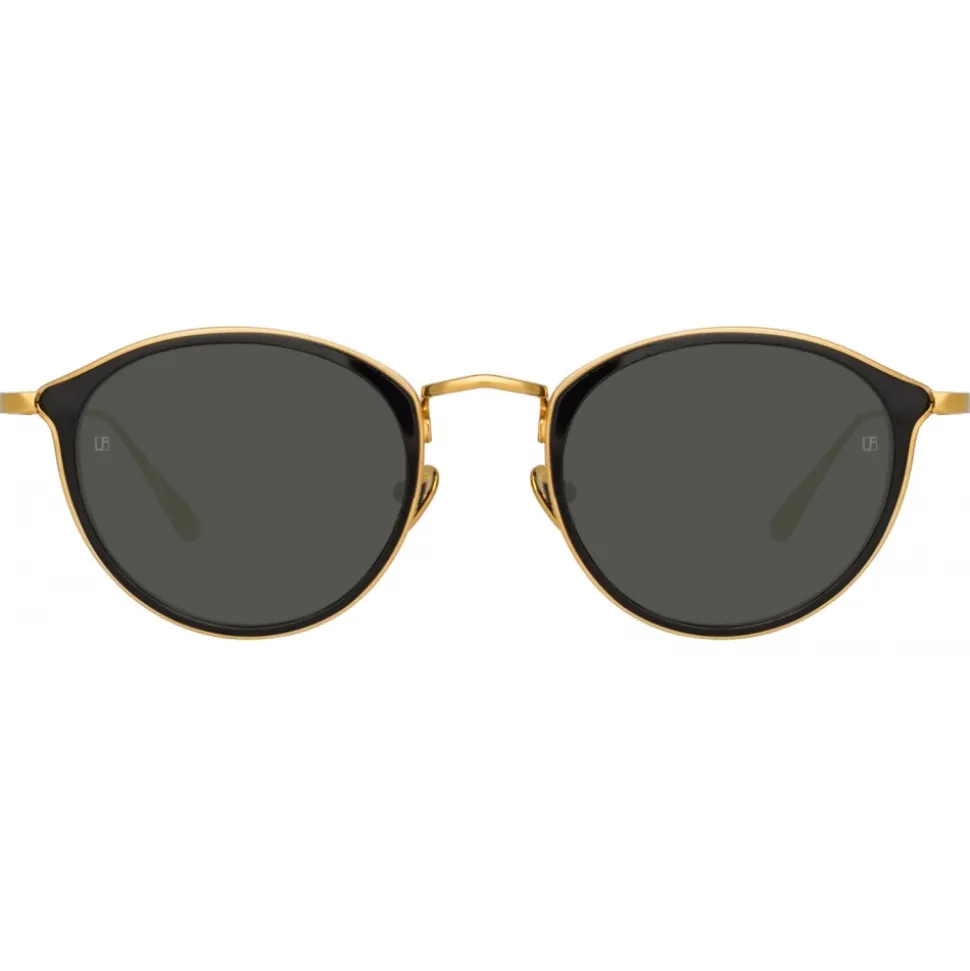 Linda Farrow – Luis Oval Sunglasses in Yellow Gold Black – LFL1224C5SUN – Linda Farrow Eyewear