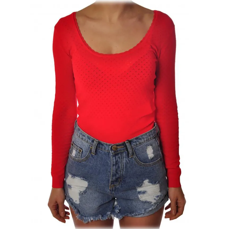 Liu Jo – Fitted Top with Boat Neckline – Red – Top – Made in Italy – Luxury Exclusive Collection