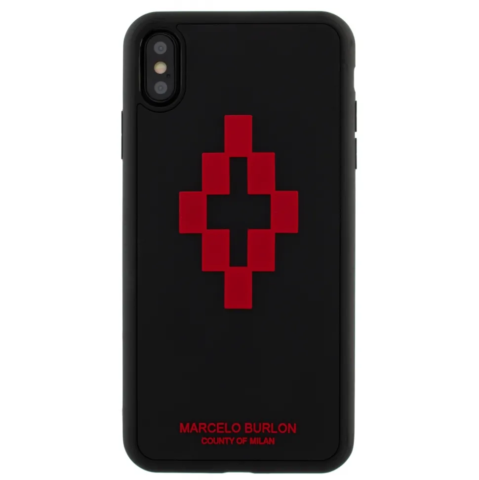 Marcelo Burlon printed iPhone 11 Pro Max case. Black case with 3D Cross Red printed embellishment. Suitable for iPhone.