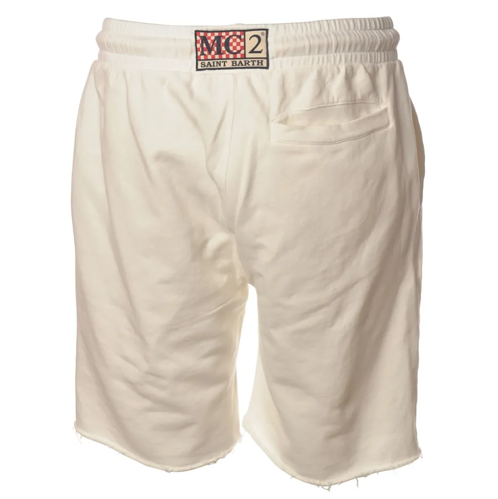 Bermuda with elastic waist, all made entirely of faded fabric. Drawstring and drawstring. Contrasting color stitching on the bottom. MC2 badge on the back, Saint Barth.