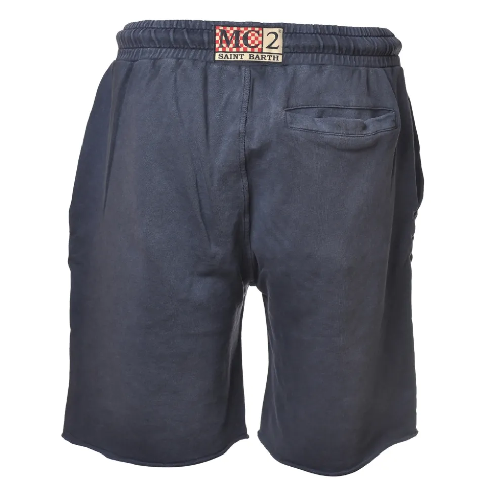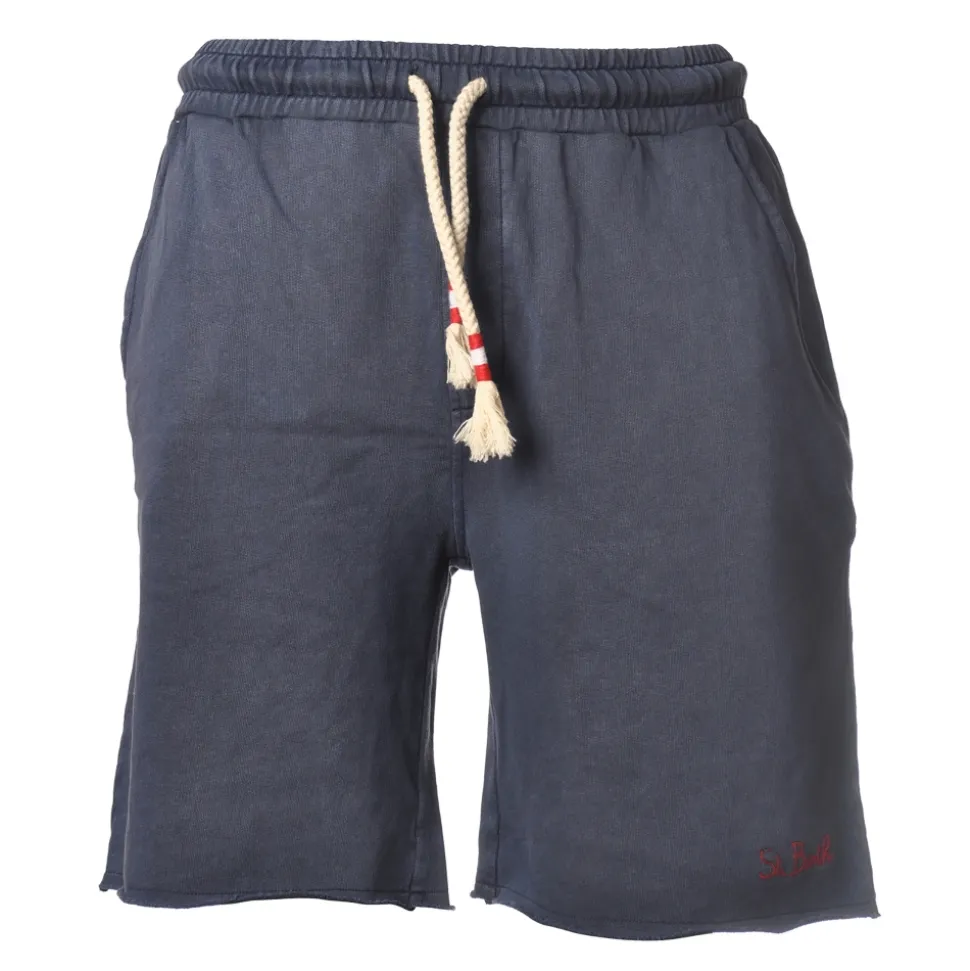 Bermuda with elastic waist, all made entirely of faded fabric. Drawstring and drawstring. Contrasting color stitching on the bottom. MC2 badge on the back, Saint Barth.