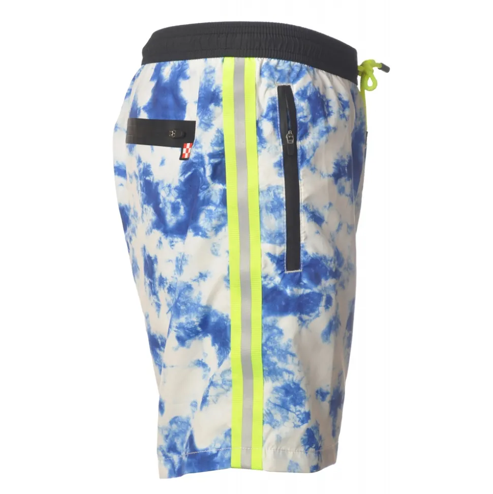Boxer costume with elastic waist and drawstring closure, with solid black waist. Entirely made in tie dye effect. Sides profiled with reflective tape, Sainth Barth.