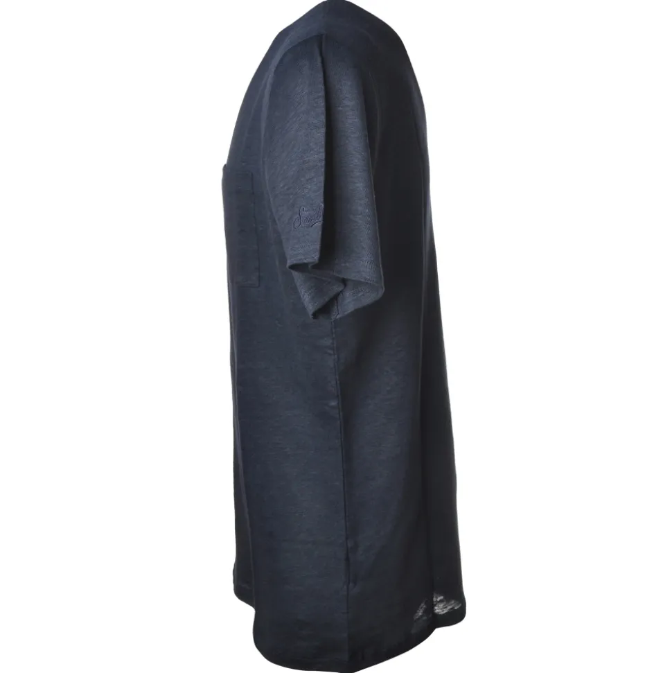 MC2 Saint Barth – T-Shirt in Linen with Pocket – Blue – Luxury Exclusive Collection