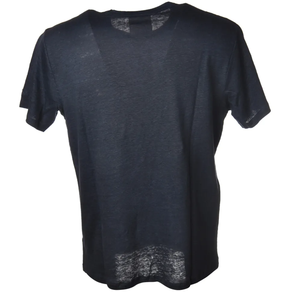 Crewneck T-shirt, short sleeve, with pocket, in solid color linen fabric, Saint Barth.