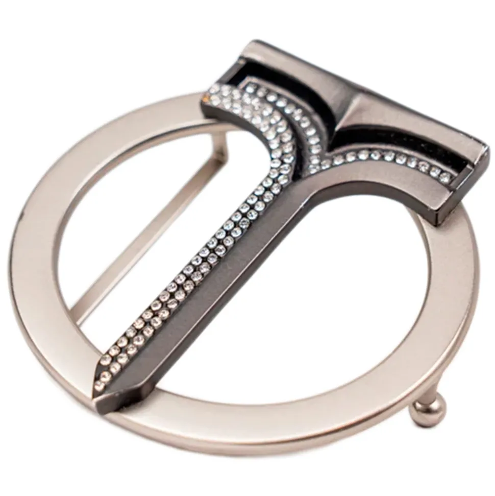 Red anguilla leather belt with a silver logo buckle embellished with Swarovski crystals.