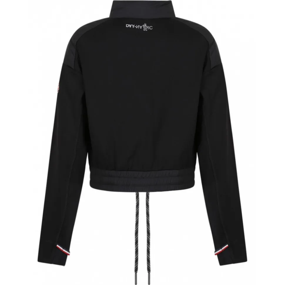 Moncler Grenoble Black Zip Up Cardigan. Black high collar cardigan, front zip closure, contrasting Mocler logo on the front, technical fabric details.