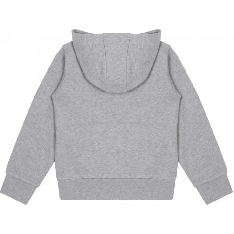 Moncler Enfant Light Grey Logo Hoodie. Light grey cotton hoodie, logo print to the front, logo patch to the front. Classic hood, front pouch pocket, elasticated cuffs and straight hem.