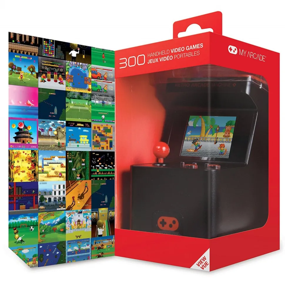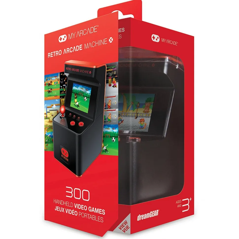Bring all the excitement of the arcade to the palm of your hand! Modeled after traditional arcade cabinets, the Retro Arcade Machine X will be sure to evoke feelings of nostalgia. Comes with 300 pre-loaded games and has a full LCD screen with illuminated buttons for optimal play.