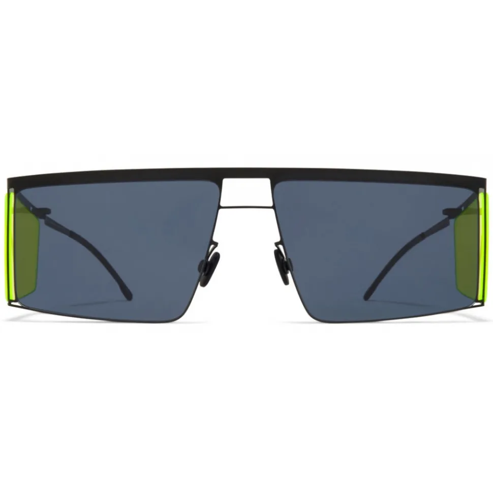 Made of lightweight stainless steel, HL001 in Black/Fluo Yellow Sides with Dark Grey Solid/Fluo lenses is a square-shaped four-lens sunglass frame from the MYKITA and HELMUT LANG collection. Handcrafted in Berlin.