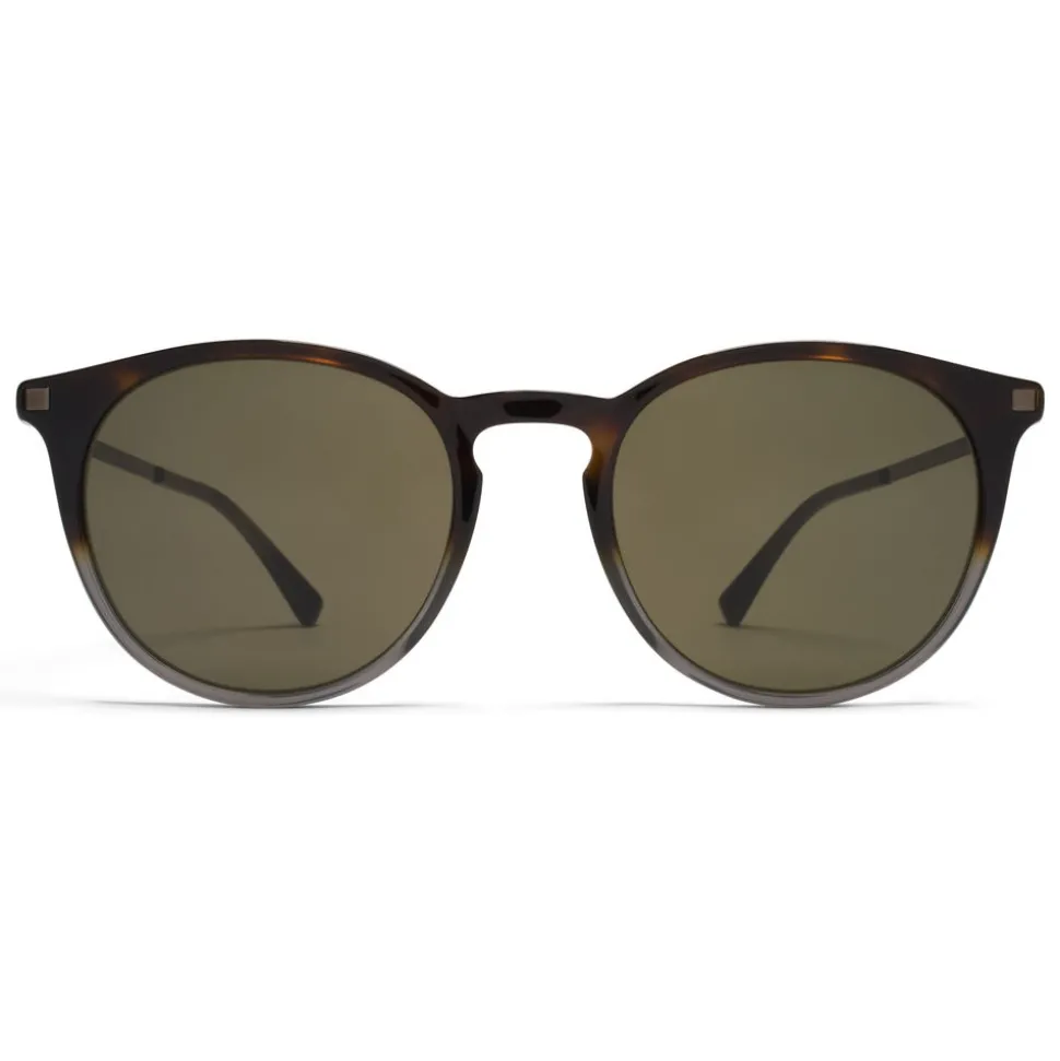 Made of lightweight stainless steel and slender acetate, KEELUT in Santiago Gradient/Shiny Graphite with Raw Green Solid lenses is a round-shaped sunglass frame from the MYKITA LITE collection. Handcrafted in Berlin.