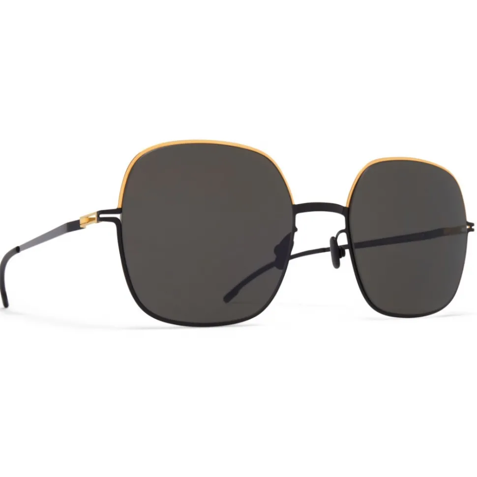 Made of lightweight stainless steel, MAGDA in Gold/Jet Black with Dark Grey Solid lenses is a square-shaped sunglass frame from the MYKITA DECADES collection. Handcrafted in Berlin.