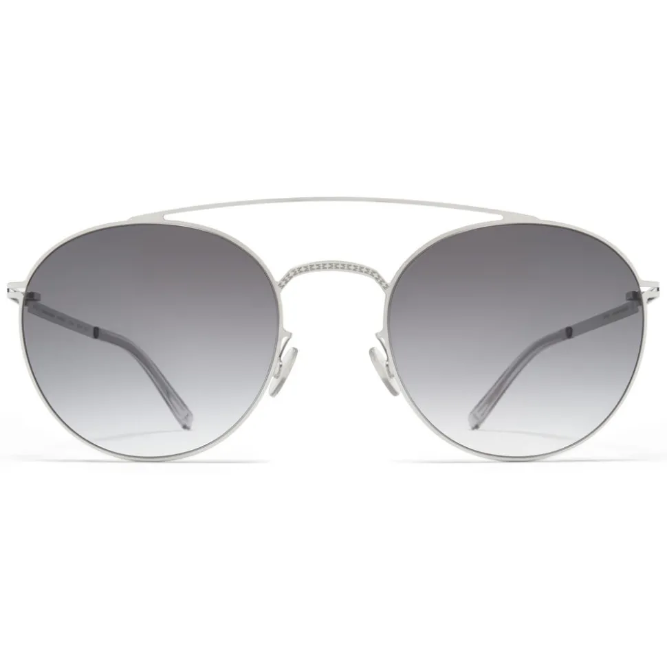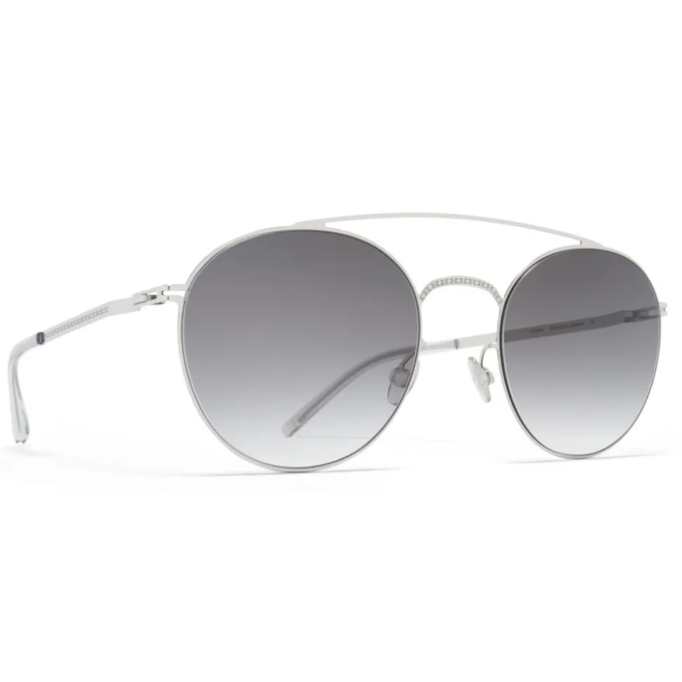 Made of lightweight stainless steel with functional details in acetate, MMCRAFT007 in Shiny Silver with Grey Gradient lenses is a panto-shaped sunglass frame from the MYKITA + MAISON MARGIELA collection. Handcrafted in Berlin.