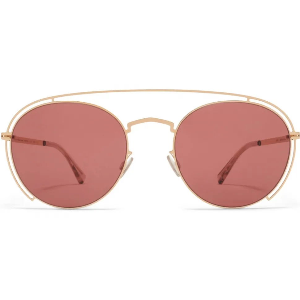 Made of lightweight stainless steel with functional details in acetate, MMCRAFT009 in Champagne Gold with Purple Solid lenses is a panto-shaped sunglass frame from the MYKITA + MAISON MARGIELA collection. Handcrafted in Berlin.