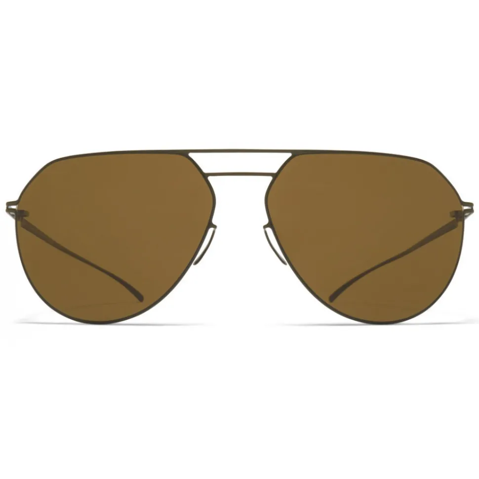Made of lightweight stainless steel, MMESSE027 in E16 Camou Green with Raw Brown Solid lenses is an aviator-shaped sunglass frame from the MYKITA + MAISON MARGIELA collection. Handcrafted in Berlin.