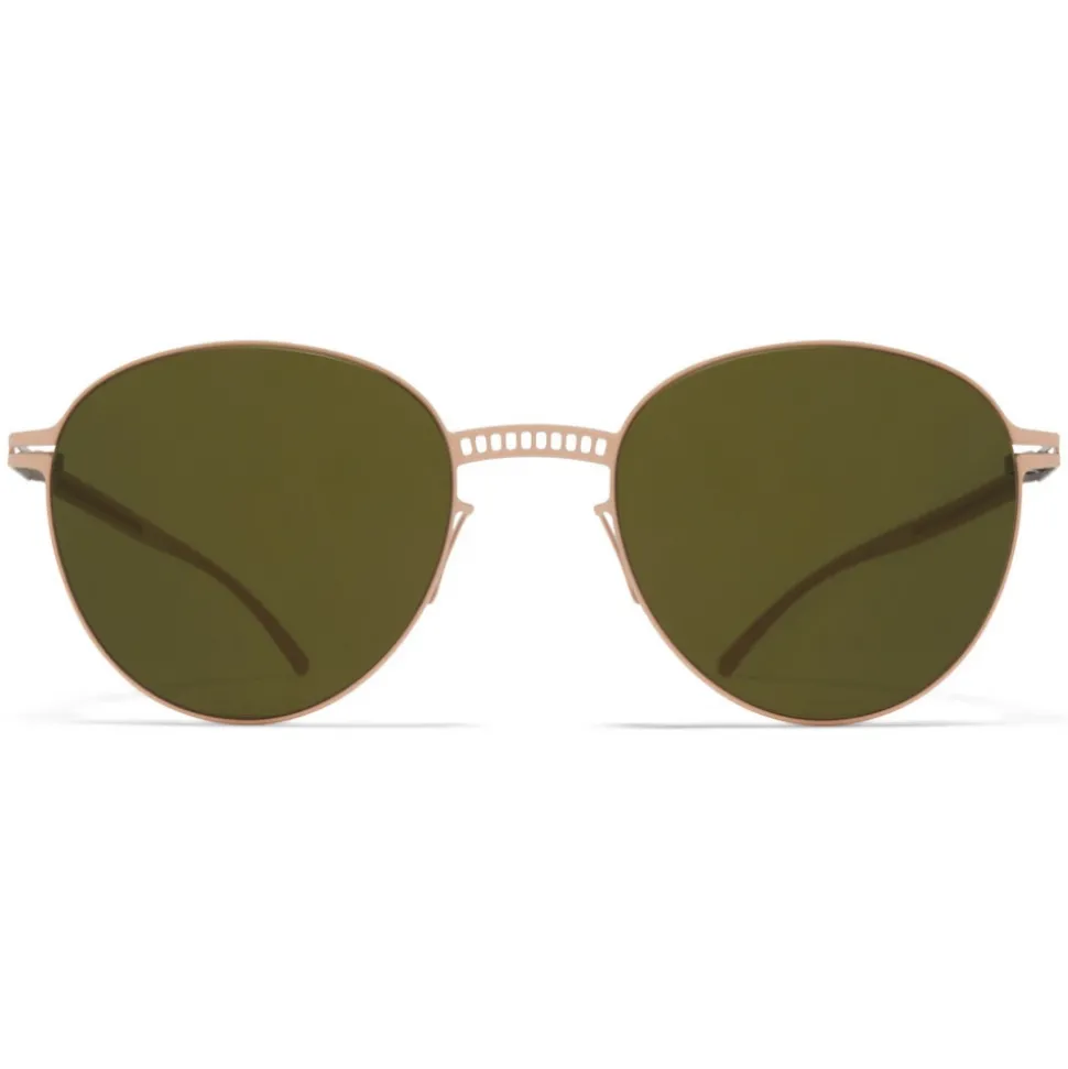 Made of lightweight stainless steel, MMESSE029 in E9 Nude with Raw Green Solid lenses is a panto-shaped sunglass frame from the MYKITA + MAISON MARGIELA collection. Handcrafted in Berlin.