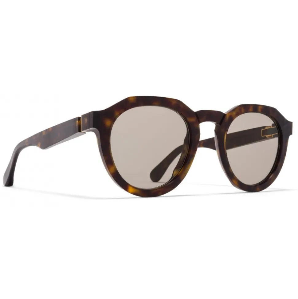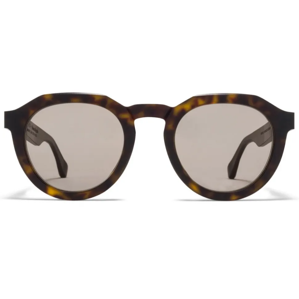 Made of unpolished acetate, MMRAW007 in Raw Tobago with Smoke Brown Solid lenses is a panto-shaped sunglass frame from the MYKITA + MAISON MARGIELA collection. The visible traces of the milling process make each model unique. Handcrafted in Berlin.