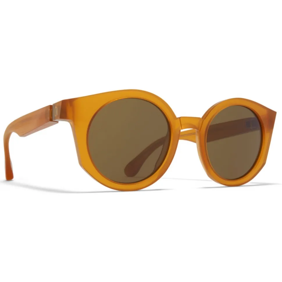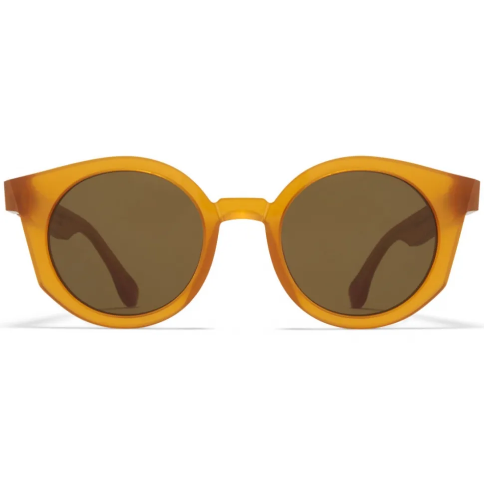 Made of unpolished acetate, MMRAW013 in Raw Amber with Raw Brown Solid lenses is a round-shaped sunglass frame from the MYKITA + MAISON MARGIELA collection. The visible traces of the milling process make each model unique. Handcrafted in Berlin.