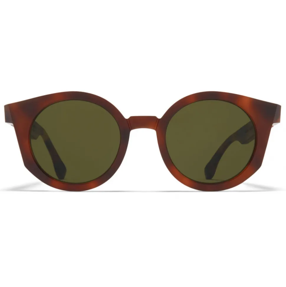 Made of unpolished acetate, MMRAW013 in Raw Zanzibar with Raw Green Solid lenses is a round-shaped sunglass frame from the MYKITA + MAISON MARGIELA collection. The visible traces of the milling process make each model unique. Handcrafted in Berlin.