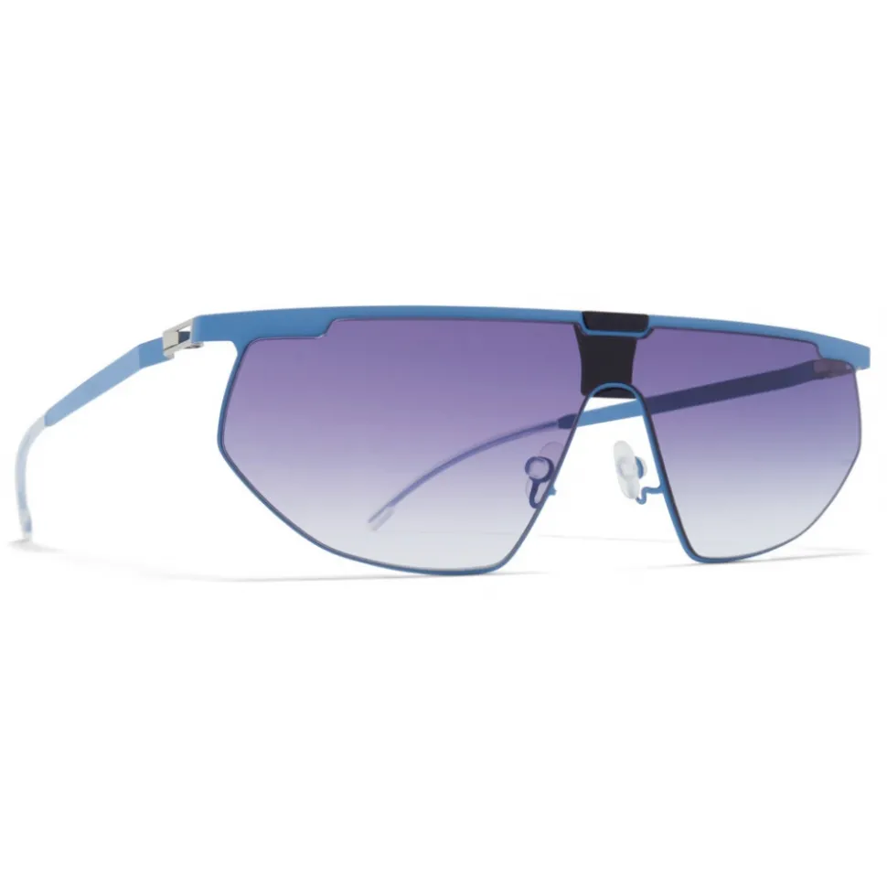 Made of lightweight stainless steel, PARIS in MH48 Blue Grey/Pitch Black with Dark Blue Gradient Shield lenses is a square-shaped sunglass frame from the MYKITA & BERNHARD WILLHELM collection. Handcrafted in Berlin.