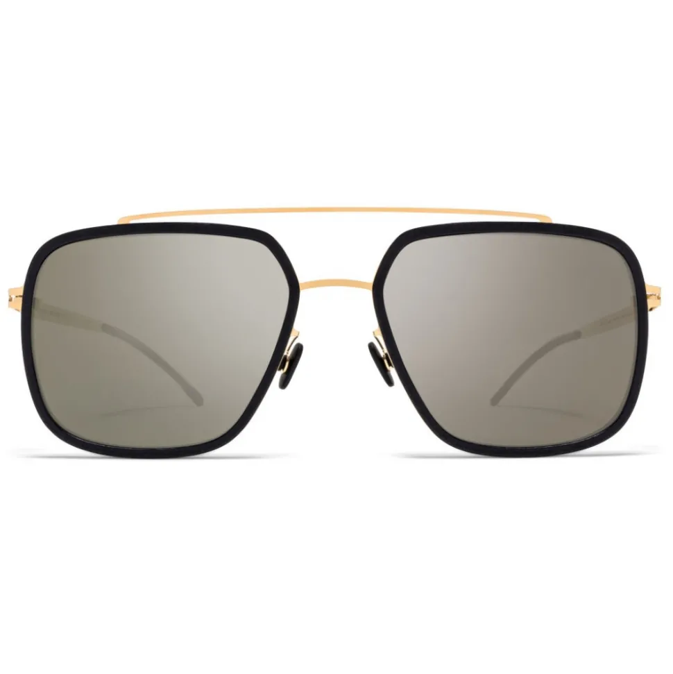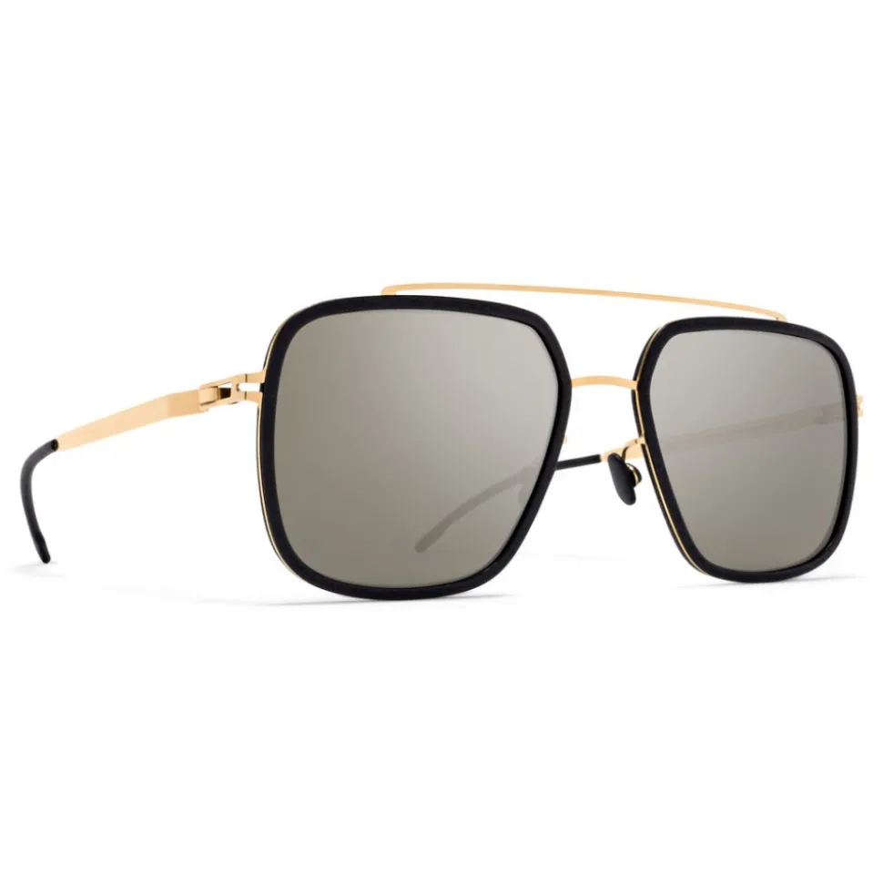 Made of MYLON – an exceptionally light and durable material – REED in MH7 Pitch Black/Glossy Gold with Gun Metal Flash lenses is an aviator-shaped sunglass frame from the MYKITA MYLON collection. Handcrafted in Berlin.