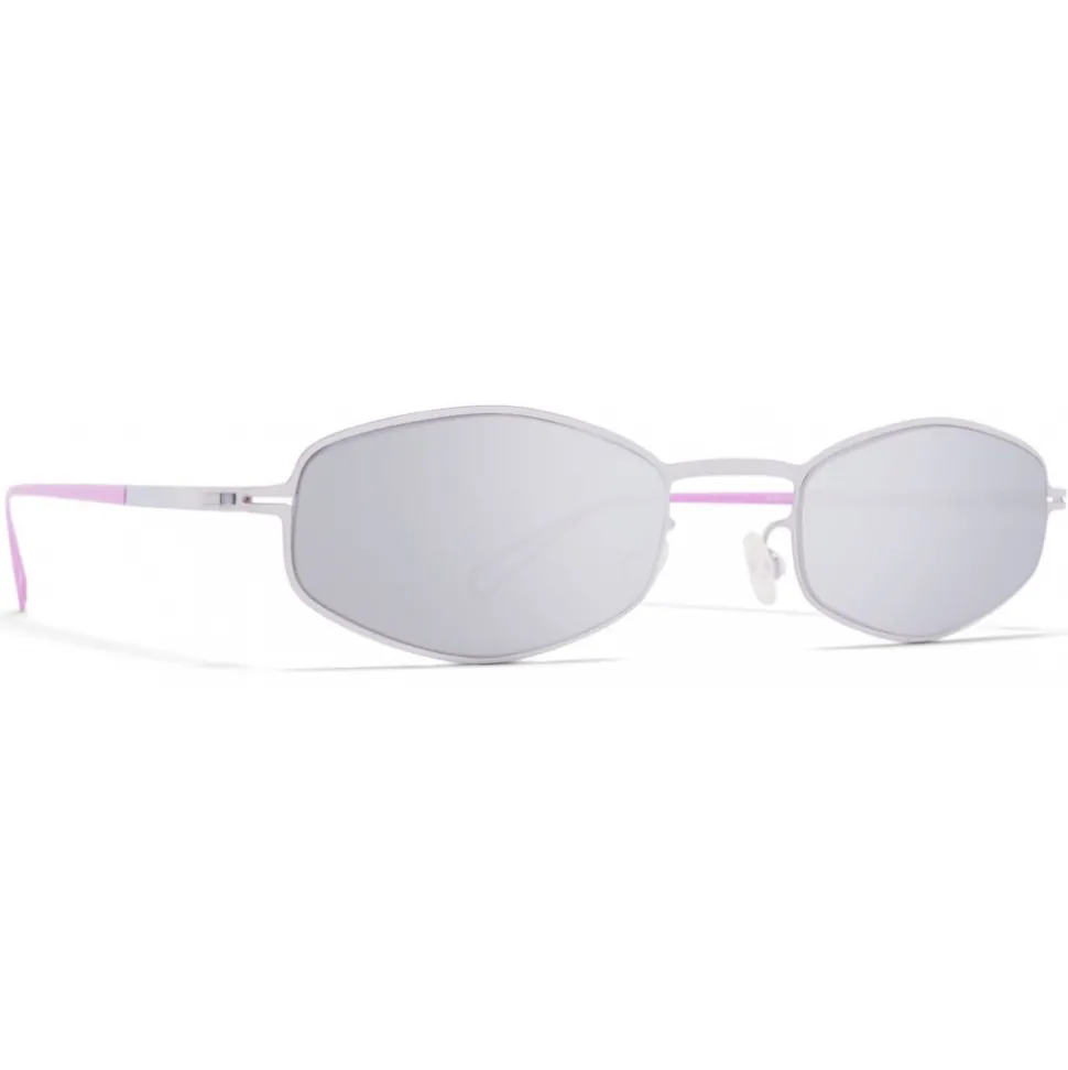 Made of lightweight stainless steel, SILVER in C81 Chrome/Barbie Lilac with Silver Flash lenses is a round-shaped sunglass frame from the MYKITA & BERNHARD WILLHELM collection. Handcrafted in Berlin.