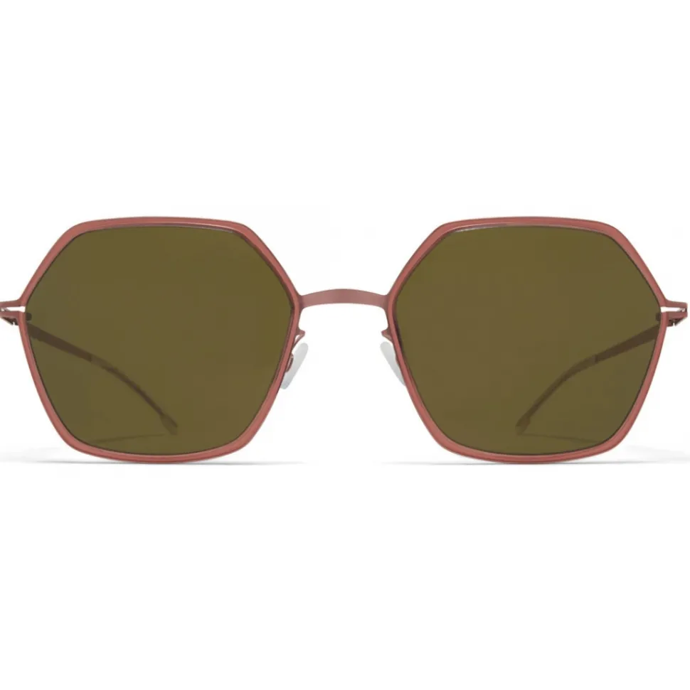 Made of lightweight stainless steel, TILLA in Purple Bronze/Pink Clay with Raw Green Solid lenses is a square-shaped sunglass frame from the MYKITA DECADES collection with a geometric rim design. Handcrafted in Berlin.