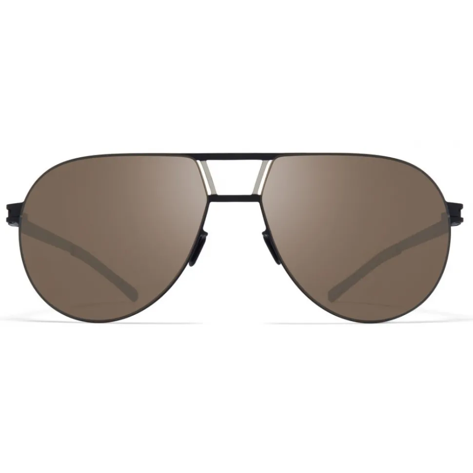 Made of lightweight stainless steel, ZANE in Black/Silver with Muddy Brown Flash lenses is an aviator-shaped sunglass frame from the MYKITA NO1 collection. Handcrafted in Berlin.