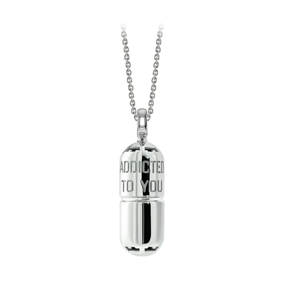 PILL.OLA is jewel therapy. A luxurious treatment capable of altering your state, thanks to the active ingredients of gold and diamonds. The message “ADDICTED TO YOU” represents an offbeat prescription for your radiant well-being.