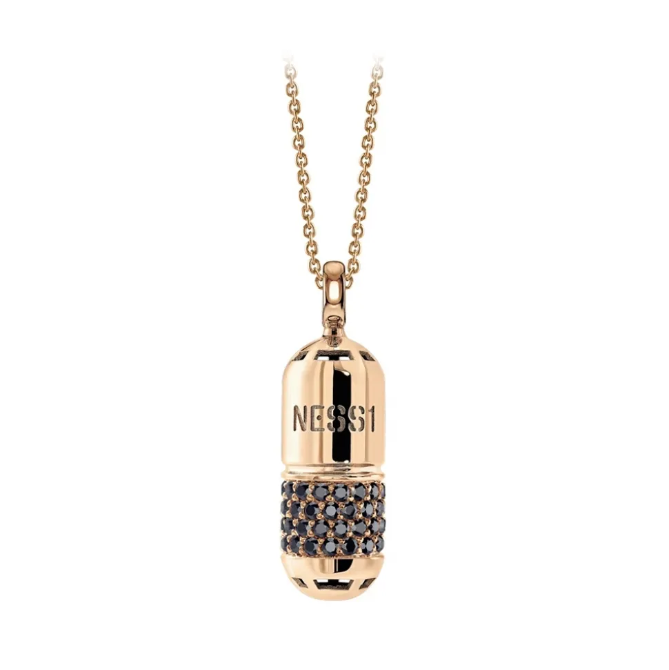 NESS1 – Pill.Ola Necklace 9Kt Rose Gold and Diamonds – Drug Collection – Artisan Necklace – Luxury High Quality