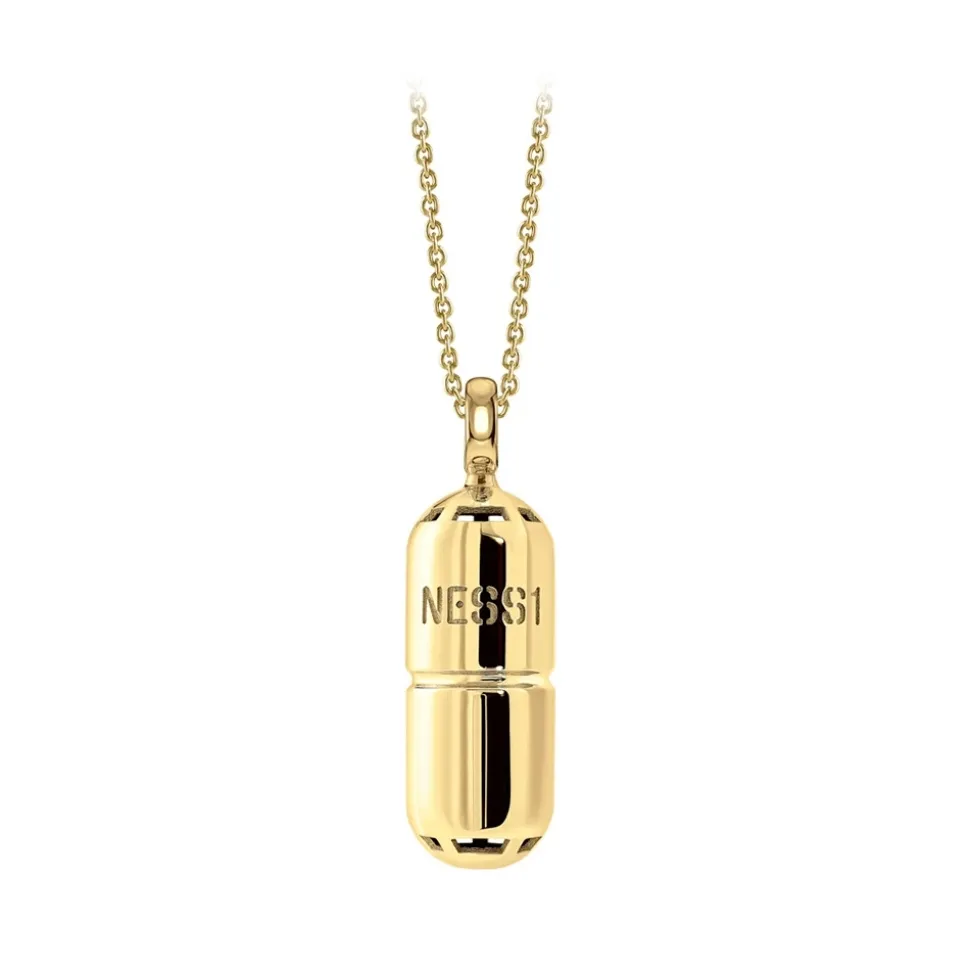 NESS1 – Pill.Ola Necklace 9Kt Yellow Gold and Diamond – Drug Collection – Artisan Necklace – Luxury High Quality