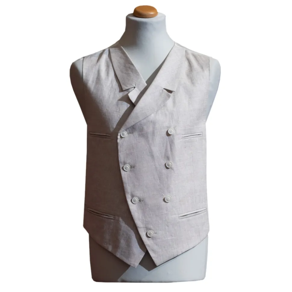 Double sartorial vest in ecru linen ’30s cut.