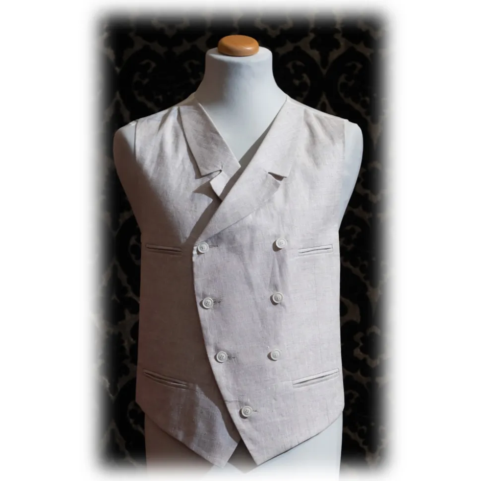 Nicolao Atelier – 30’s Vest – Ecru Linen Man – Vest – Made in Italy – Luxury Exclusive Collection