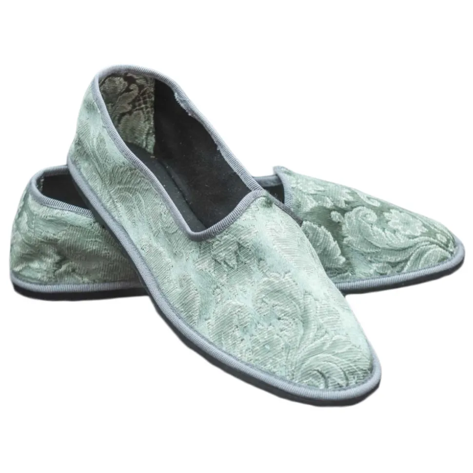 Nicolao Atelier – Furlana Slipper in Sage Green Silk Damask – Men – Shoe – Made in Italy – Luxury Exclusive Collection