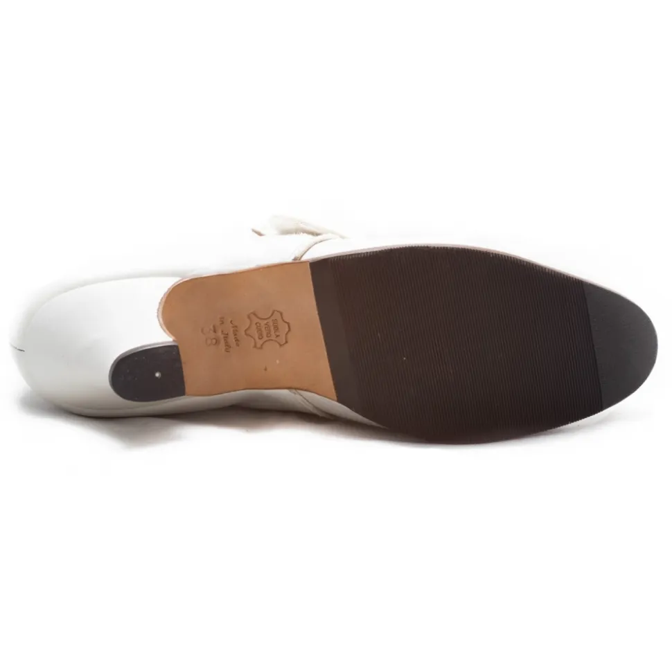 Pearl color brushed calfskin shoe, real leather lining and leather sole, designed by Stefano Nicolao.