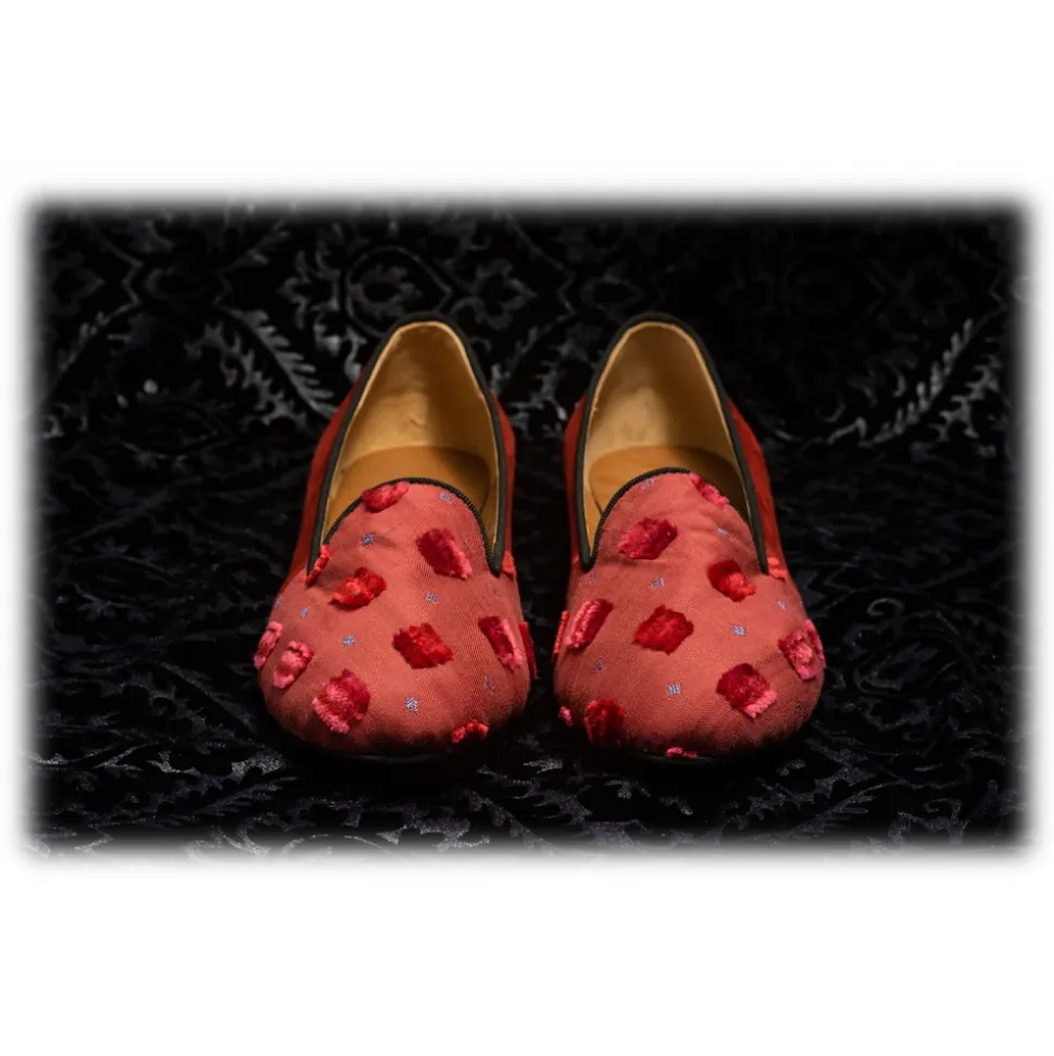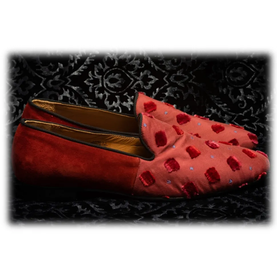 Nicolao Atelier – Silk Slipper Sock – Red Color with Red Velvet Check Pattern Man – Shoe – Made in Italy – Luxury Exclusive Collection