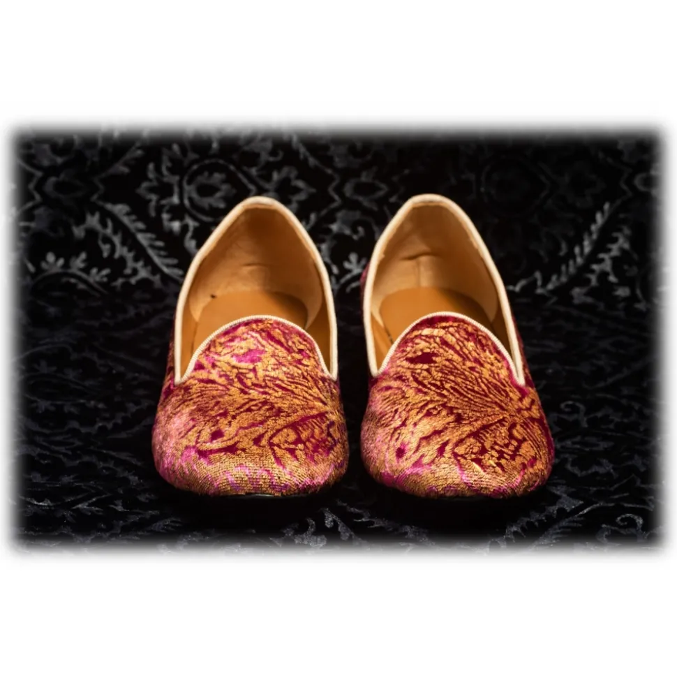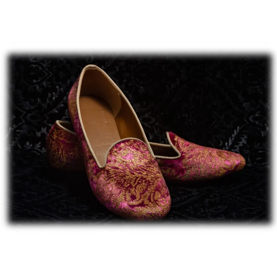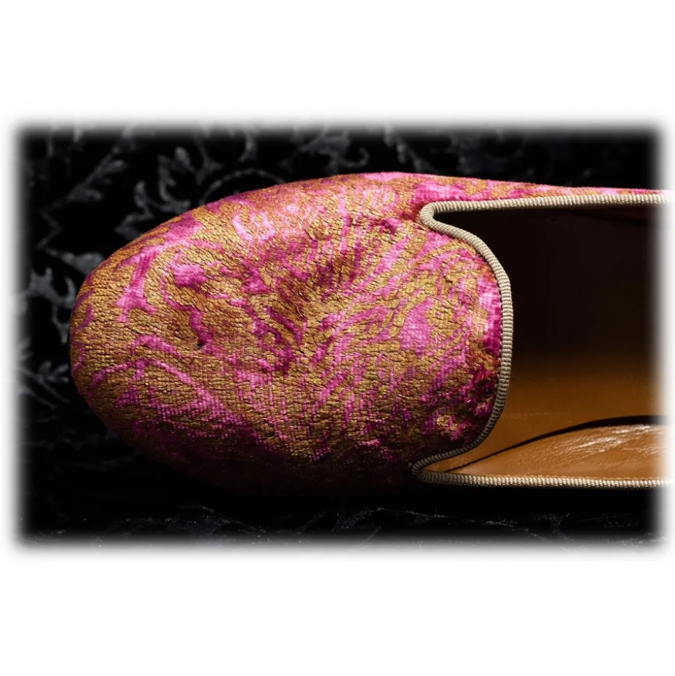 Nicolao Atelier – Silk Velvet Slipper Shoe – Fuchsia Color with Gold Decorations Woman – Shoe – Made in Italy – Luxury Exclusive Collection