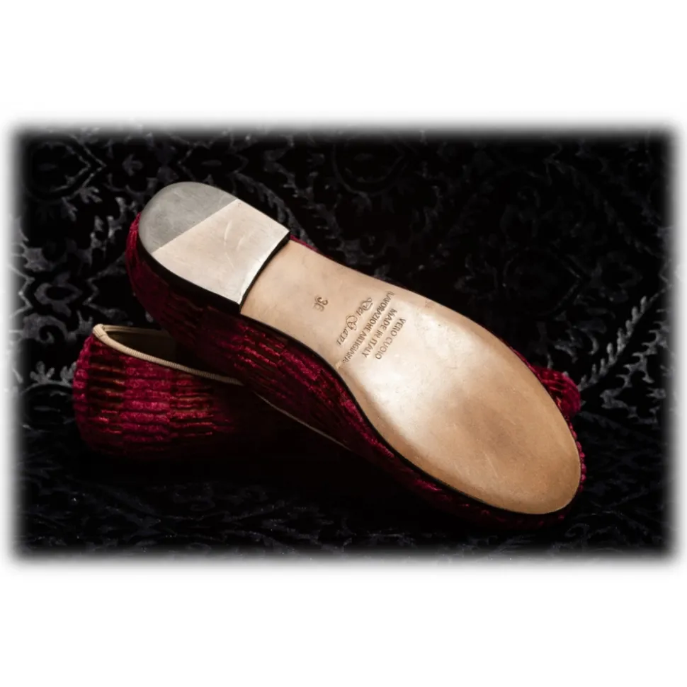 Nicolao Atelier – Velvet Striped Slipper Shoe – Bordeaux Color with Light Dark Effect Woman – Shoe – Made in Italy – Luxury Exclusive Collection