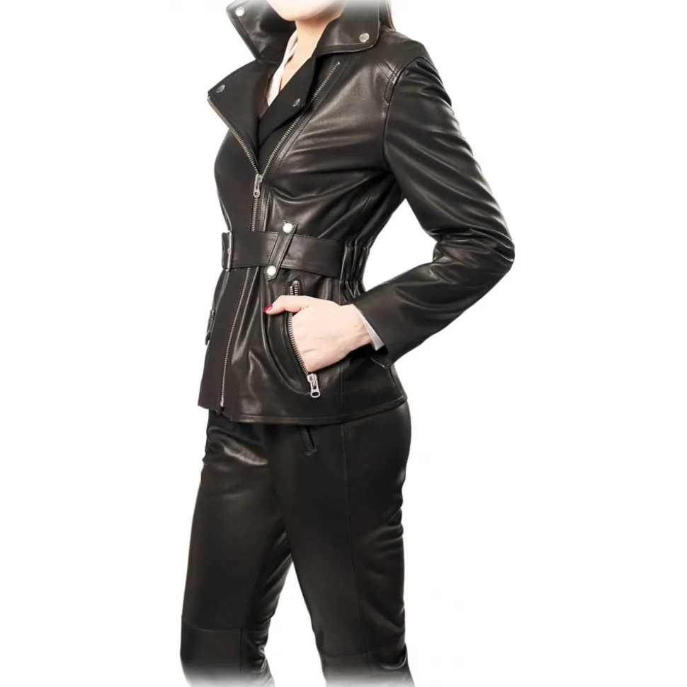 The perfecto is the essential leather jacket, combined with a safari jacket, the result is a unique model guaranteeing a rock chic style. The elastic waistband at the back highlights your arch and adjusts your line.