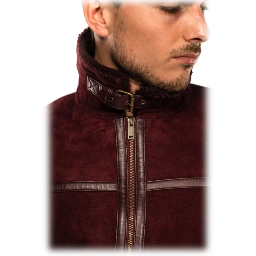 The hoker revisits a classic of the men’s wardrobe: the aviator jacket. the whole is in nubuck but the front pockets as well as linear additions are in lambskin with a smoother finish for a contrast between the textures while improving the hold and the resistance of the jacket. the interior is in wool to keep warm and the flat collar, also woolen, has an adjustment strap to be able to put it around the neck.