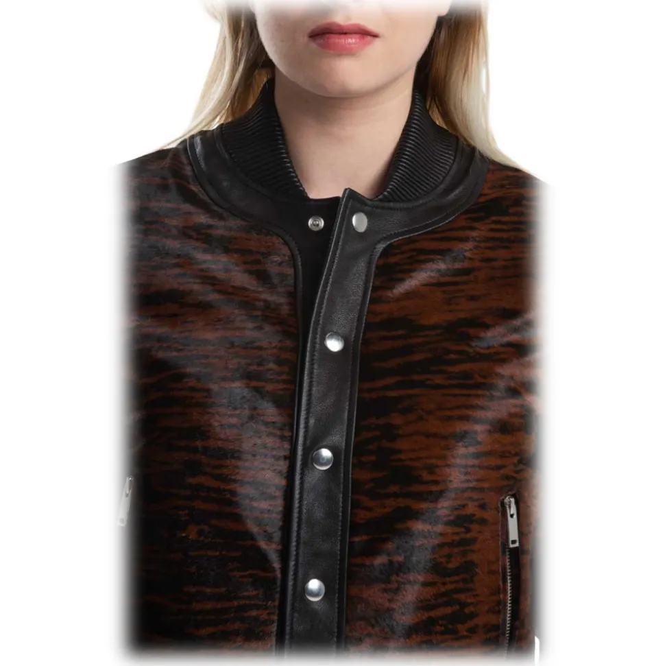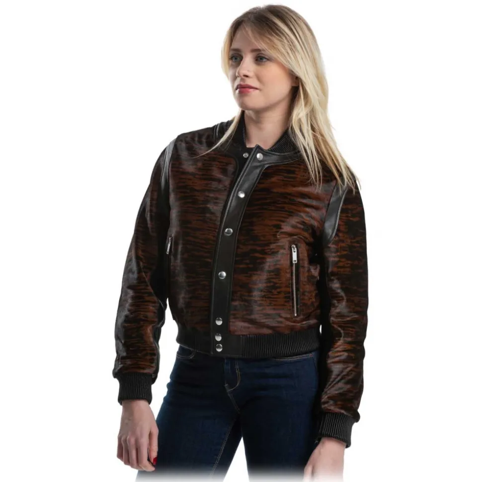 Junrad in shaved calfskin features leopard or zebra prints, marking your outfits with a luxury imprint to give an original and chic look. the reinforcements and ribbed edges are in lambskin for better resistance while maintaining a feminine style. With its shaved calfskin material, it marks your outfits with its luxury imprint that makes the difference.
