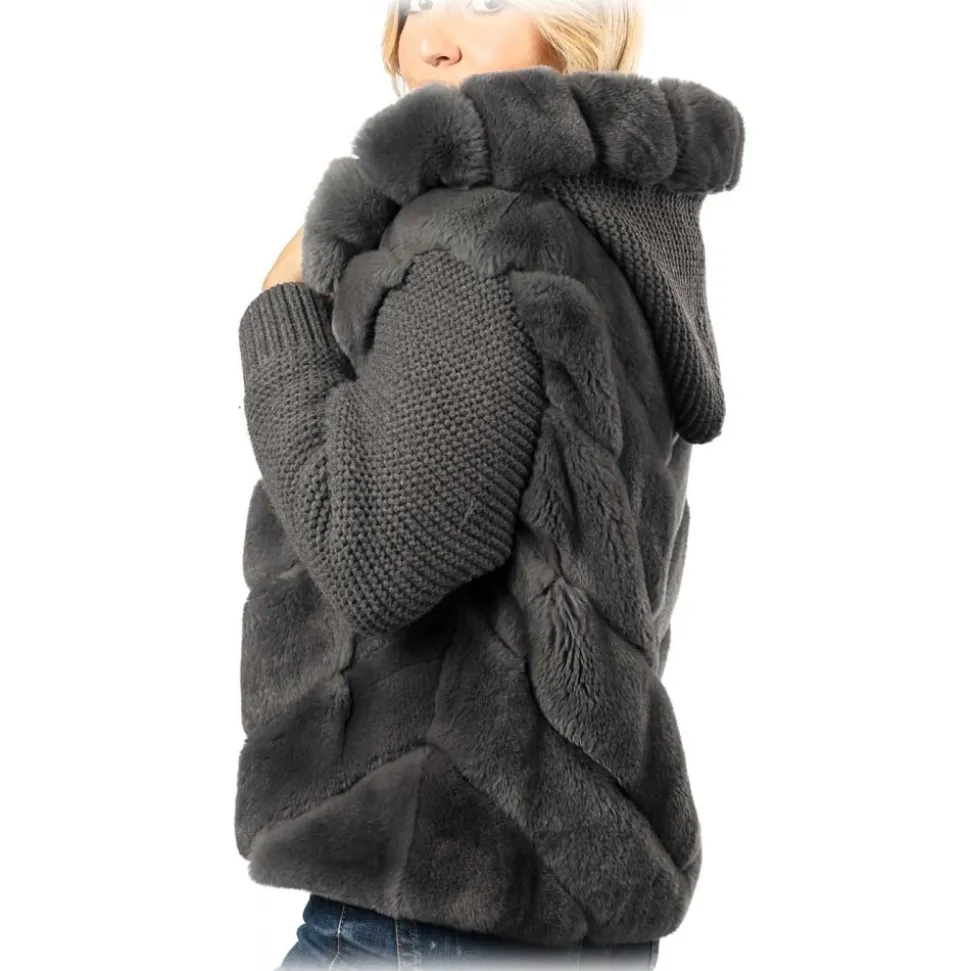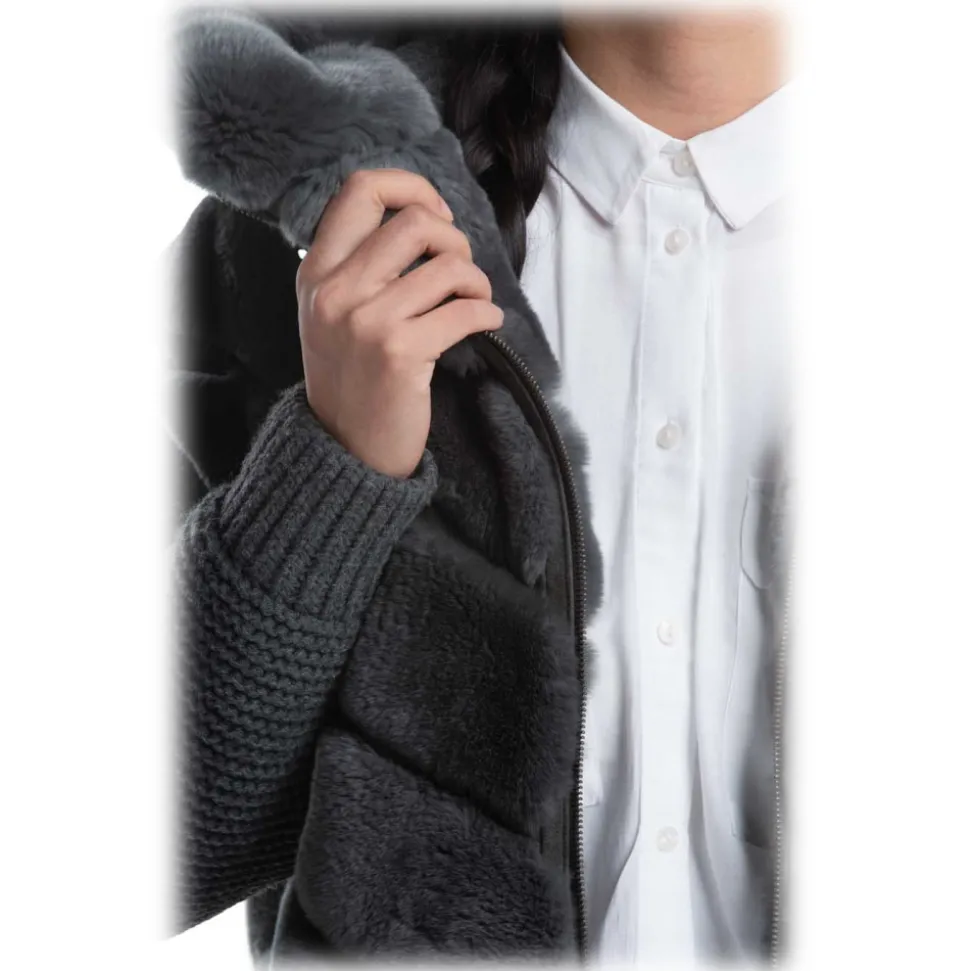 Rabbit(rex), lamb leather, wool knit