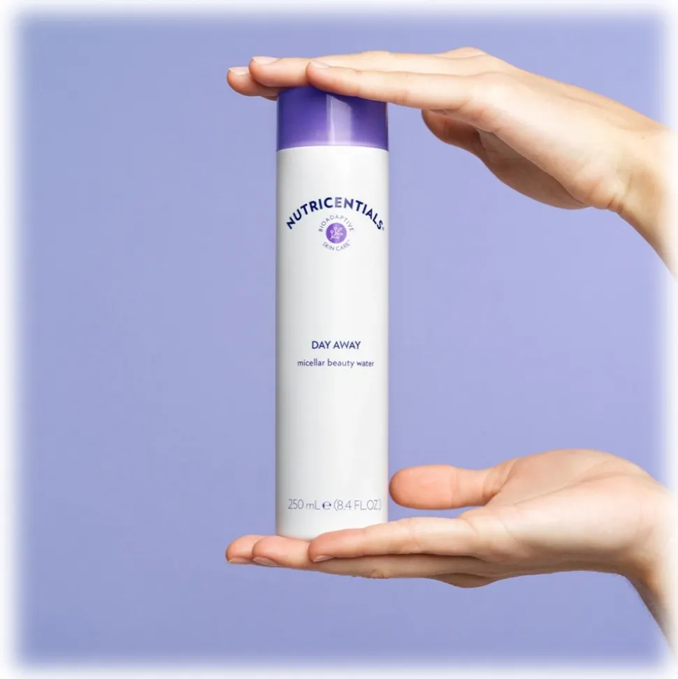 Micellar water, cleansing water powered by micelles, is known for its quick, convenient, and effective cleansing benefits. Nutricentials Day Away brings this classic experience to a whole new level with a formula that includes humectants like sodium PCA, glycerin, and propanediol to keep skin feeling soft, smooth, and hydrated.