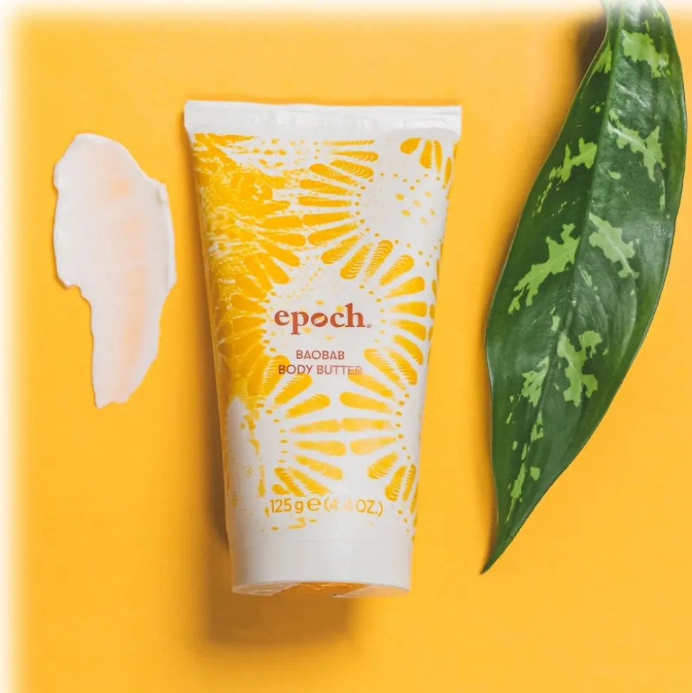 Discover the heart of Africa with Epoch Baobab Body Butter. Enriched with various nourishing agents and ethnobotanical extracts, this soft cream quenches the skin’s thirst for intense hydration. The result: silky soft and visibly smooth skin! In addition, it gives the skin a fantastic fragrance!