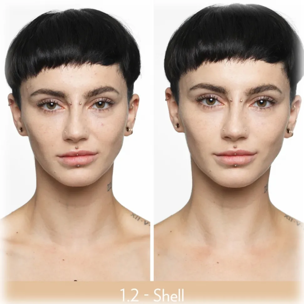 Aqua, Phenyl Trimethicone, Dimethicone, Titanium Dioxide, Butylene Glycol Dicaprylate / Dicaprate, Mica (shades 1.1, 2.1, 2.2, 3.1, 3.2; 3.4; 4.2), Butylene Glycol, Mica (shades 1.2, 1.3, 3.3, 4.1 , 5.1), Acrylates Copolymer, Butyloctyl Salicylate, Cetyl PEG / PPG-10/1 Dimethicone, Mica (shade 4.3), Squalane, Mica (shades 5.2, 5.4), Pentylene Glycol, Mica (shades 5.3, 5.5), Dimethicone / Vinyl Dimethicone Crosspolymer, Hexyl Laurate, Polyglyceryl-4 Isostearate, Glycerin, Saccharomyces Ferment Filtrate, Sodium Hyaluronate, Tribehenin, Ethylhexyl Palmitate, Hydrogenated Olive Oil Unsaponifiables, Octyldodecanol, Glucomannan, Ethylceracao, Extractedoma, Allycerin, Extractoxycer, Alhydlyceracao, Extractar Tin Oxide, Pentaerythrityl Tetra-Di-T-Butyl Hydroxyhydrocinnamate, Aluminum Hydroxide, Propanediol, 1,2-Hexanediol, Sorbitan Sesquioleate, Disteardimonium Hectorite, Stearic Acid, Methyl Methacrylate Crosspolymer, Magnesium Stearate, Magnesiethoxyca prylylsilane, Disodium EDTA, Phenoxyethanol, Synthetic Fluorphlogopite, [CI 77499, CI 77492, CI 77491, CI 77891].