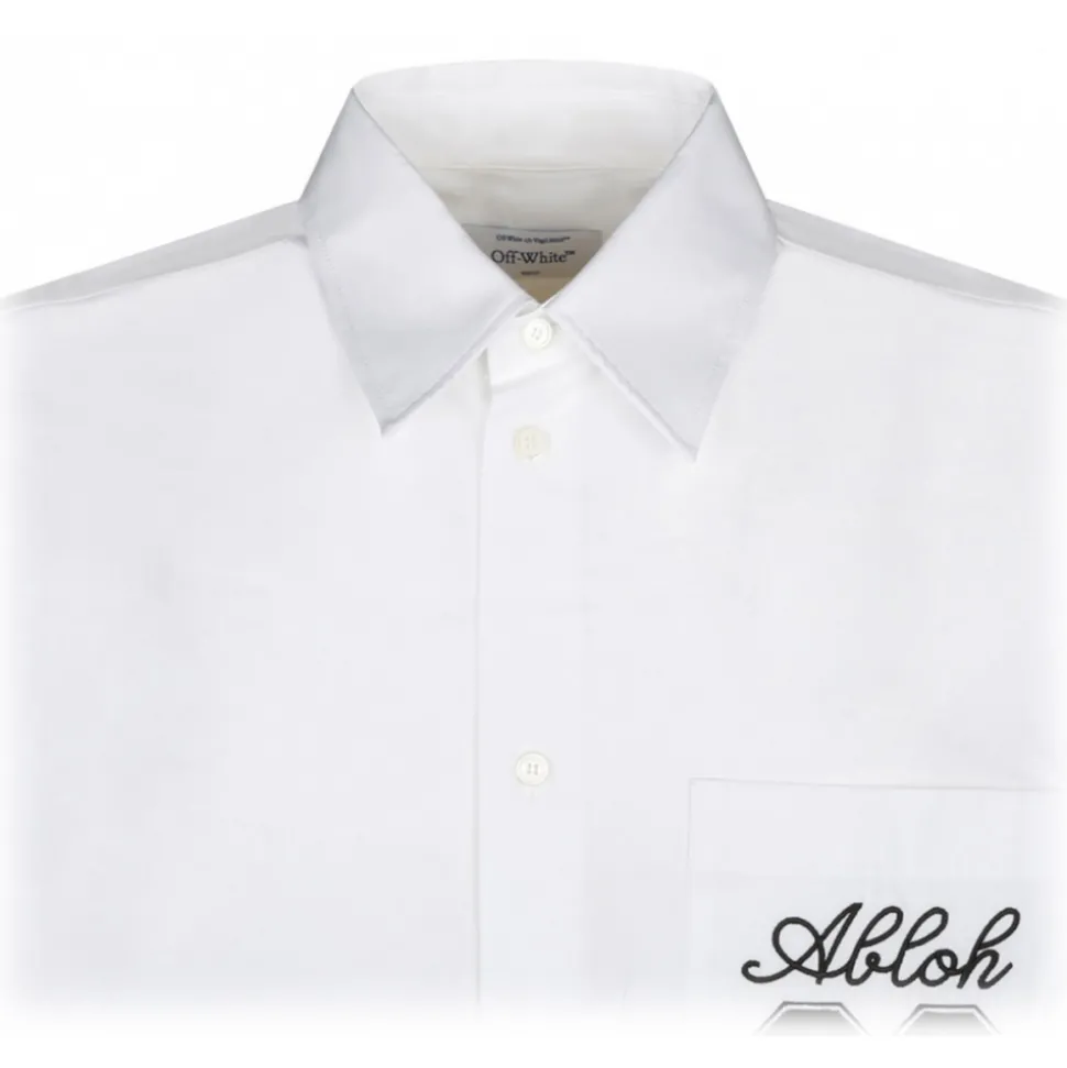 Off-White – White and Black Logo Embroidered Shirt – Exclusive Luxury Collection