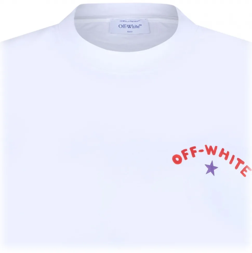Off White Star Arrow T-Shirt. White cotton t-shirt, logo print at the chest and to the rear, crew neck, short sleeves.