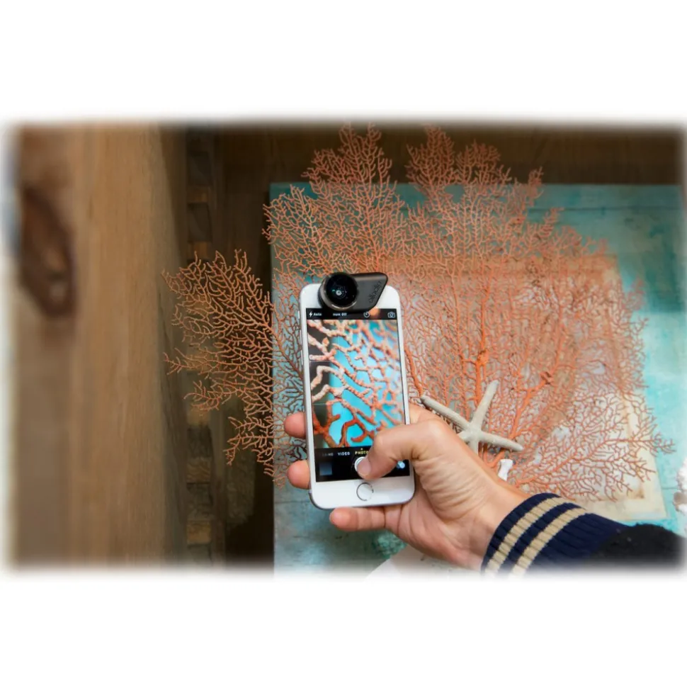 The 4-in-1 Lens Set enhances your field-of-view beyond iPhone’s built-in camera. The Fisheye and Wide-Angle lenses enable you to capture more – ideal for photographing panoramic landscapes or snapping a selfie with a group of friends. Access the Macro lenses by unscrewing the Fisheye and Wide-Angle lenses to photograph crisp close-ups and get detail-oriented beyond the naked eye.