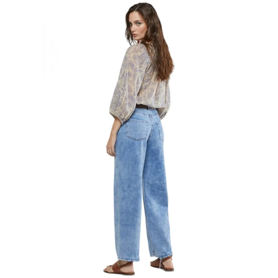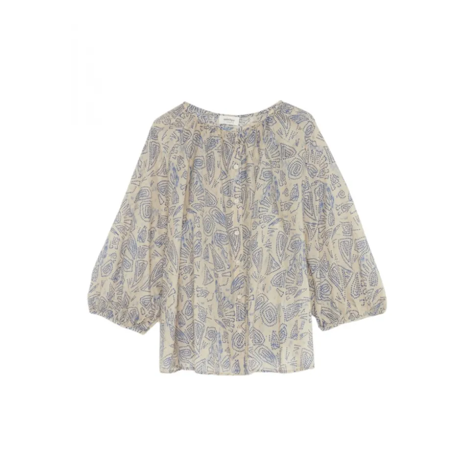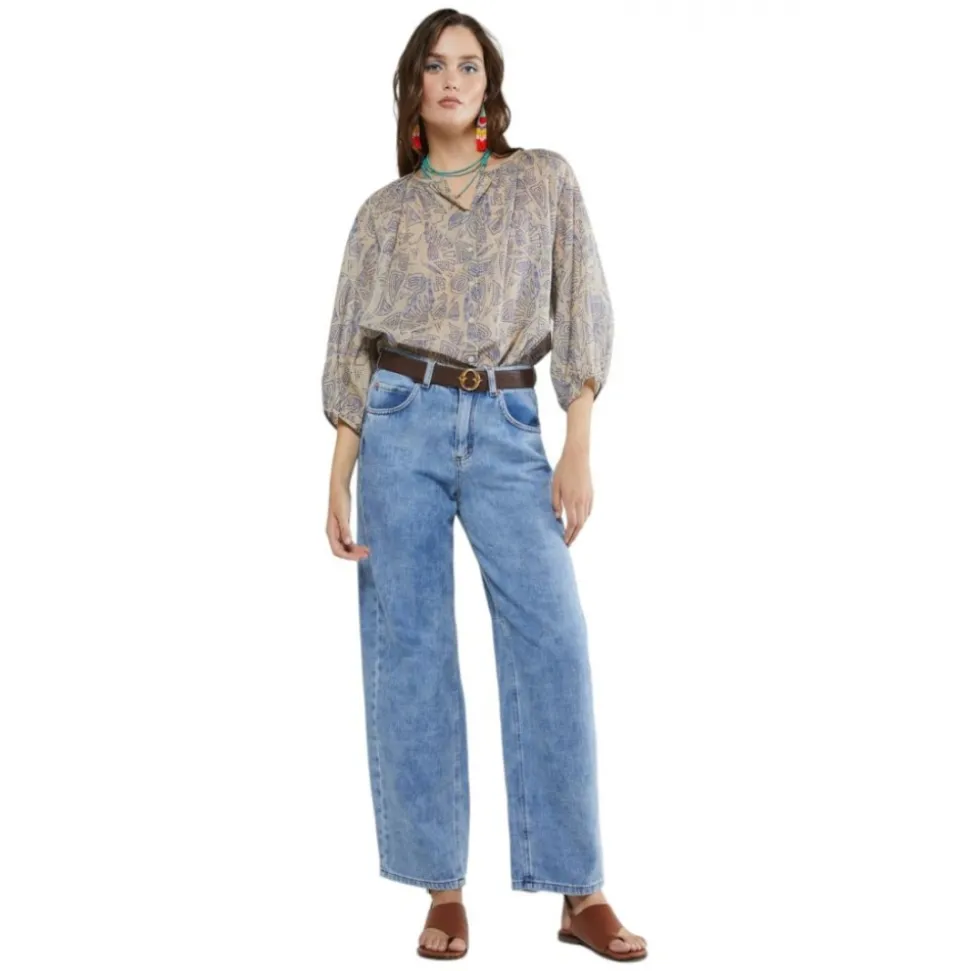 Ottod’Ame box blouse with side buttons, V-neck, with shirt collar, long sleeves, in lightweight cotton fabric.