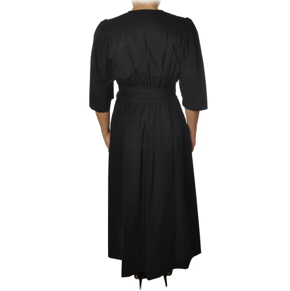 Ottod’ame dress, long model with short sleeves, cross with sash that binds, with wide skirt and concealed pockets, in light cotton fabric.